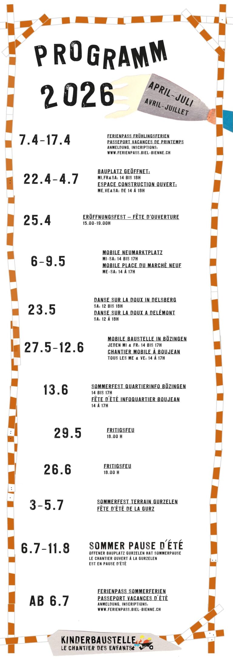 Die Kinderbaustelle ist ein Mitmach-Freizeitangebot für die ganze Familie. Kinder ab der 1. Klasse können auf dem betreuten Bauplatz kostenlos mit unterschiedlichen Baumaterialien bauen und gestalten.