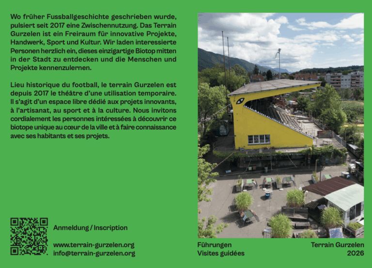 Infos, Kontakte, Facts und Mitteilungen zur Zwischennutzung im Gurzelen Stadion Biel/Bienne. Wie funktionieren wir und wie könnt ihr Euch einbringen?Seit 2017 eine Heimat für 50+ Projekte und Initiativen, Freiraum für Kreativität, Kultur & Sport. Spielplatz für Jung & Alt. Begegnungs- und Kulturort für Quartier und Stadt.